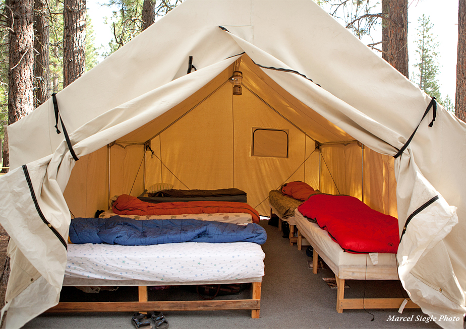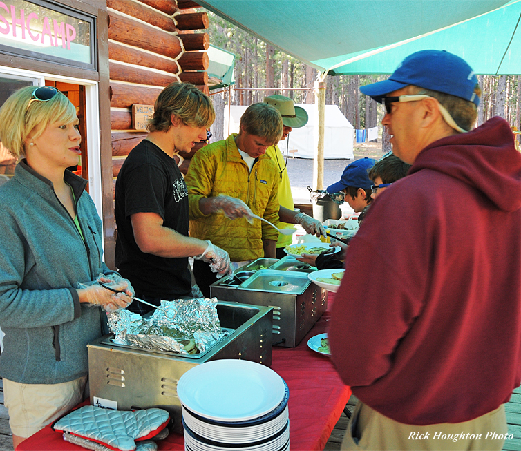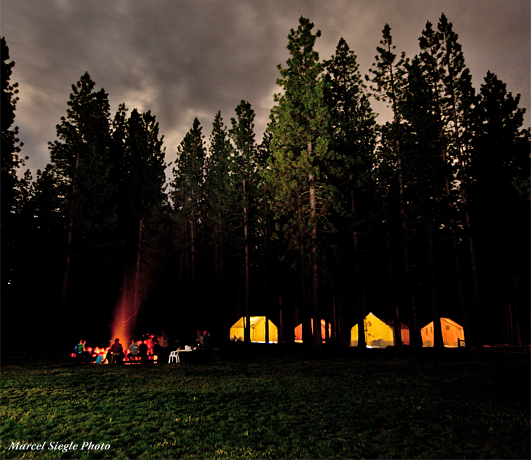 Families stay in our state-of-the-art walled tents on comfortable bunks, with the whispers of the wind amidst the pines lulling them to sleep at night. Healthy, well-rounded meals will be prepared and served to you and your family in our outdoor kitchen by our professional camp cooks. We also have a great bathhouse, composed of two separate bathrooms complete with flush toilets and plenty of hot water for showers.