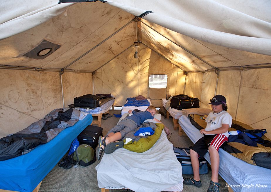 FishCamp™, a destination: FishCamp™ is located in the shadows of Mount Shasta near the town of Weed, California, at our very own Antelope Creek Ranch. The historic 440 acre ranch is only a one hour forty minute drive from The Fly Shop® in Redding, and surrounded by tens of thousands of acres of pristine Klamath National Forest. Antelope Creek is a privately leased ranch with both a stream and two lakes teeming with fish. The ranch is set at 5,000 ft elevation, so even in the heat of midsummer the days remain comfortable and the nights are always cool. Campers are housed in state of the art walled tents where they rest their heads on comfortable bunks. There are bathroom and shower facilities – separate for boys and girls – and a shaded outdoor grill and eating area.