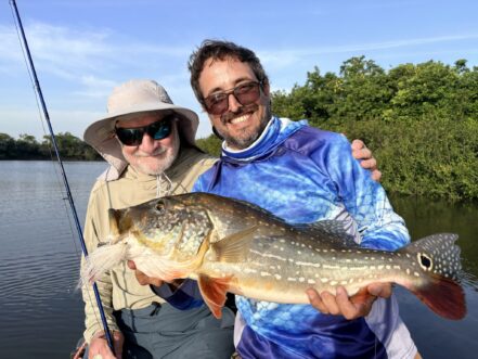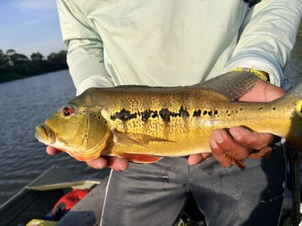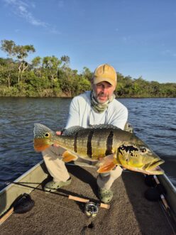 The Floating Camp was a great all-around experience. This is the ultimate trip for someone that wants to experience peacock bass fishing in South America. The fishing program is varied. 2 rivers to fish, a lot of lagoons and more river fishing than anywhere else I have been. Fishing sandbars and even logs in the deepwater current. A very healthy system with lots of spotted Temensis, butterflies, and some Intermedia mixed in. Of course there is always a chance for a big fish. They catch 20- pounders throughout the season, usually weekly. I think all the big fish were lost during our week. The fish seem stronger than most places I have fished them in. Oscar, our guide was newer but he was great. He was very enthusiastic, really wanted us to catch fish and never let down on the pursuit. There were times he could have just fished something easy, but he would instead beat the bushes to another lagoon. Guides seemed a little more dialed in than at the River Lodge. You keep your guide for the week, which allows them to fine-tune the week, but it would have been nice to fish with the other guides. The food was great, buffet and more homestyle, but very tasty. The Camp was comfortable, nothing fancy but everything you needed. Boats were smaller but still had enough room for both anglers to fish out of. No real boat problems or motor issues. The Ilanero singers on the last night were such a nice touch, a highlight for many of us. Everyone had a great time and I hope to send many people there to experience the culture and fishing.