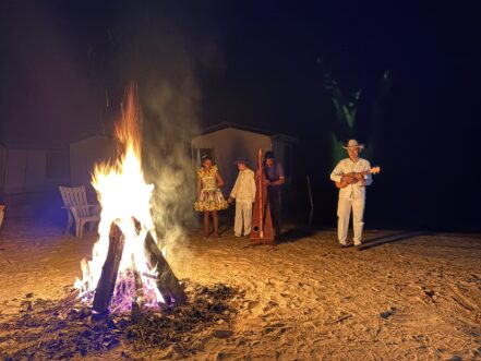 The last day. We decided to do the earlier breakfast again and took off a little after six. We were all heading down the river. Jacob said this is the day where the guide’s do whatever they want, no set plan. A couple of boats really wanted to focus on bigger fish. We hit some familiar spots and ended up getting about a dozen fish for the morning. At lunch back at camp we took a long siesta. After lunch we drove a half an hour up the Tomo and fished this beautiful lagoon full of trees and clearer water. We mostly popper-fished. I had 5 – 6 eat my NYAP Popper, but they were smaller fish, and I didn’t stick any but we did see/hear a few big ones eating as the light got low. A half hour boat ride back. The final night they had local musicians come to camp and perform around the campfire. It was a Ilanero music group that performed Joropo, the traditional music of the Colombian plains. Joropo is closely tied to cowboy and ranch life. The songs talk about daily life on the plains – cattle work, long days and nights, nature, love, heartbreak and personal stories passed down through generations (just like our country music). One of the main instruments is the llanero harp which gives Joropo its distinctive sound along with small guitars and vocals. It was a nice touch.