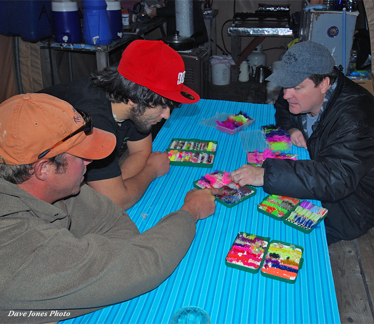 Stig runs a couple of jet boats on the river, so typically three anglers will go in each, and cover as many miles of the river as needed to wear themselves out. The boats are really only used for access - the stream's gradient is very mild, so virtually all fishing is done while wading. Most pools are only 4-6 feet deep, so floating lines and medium sink rate wet tips are standard fare for all of the species fished for.