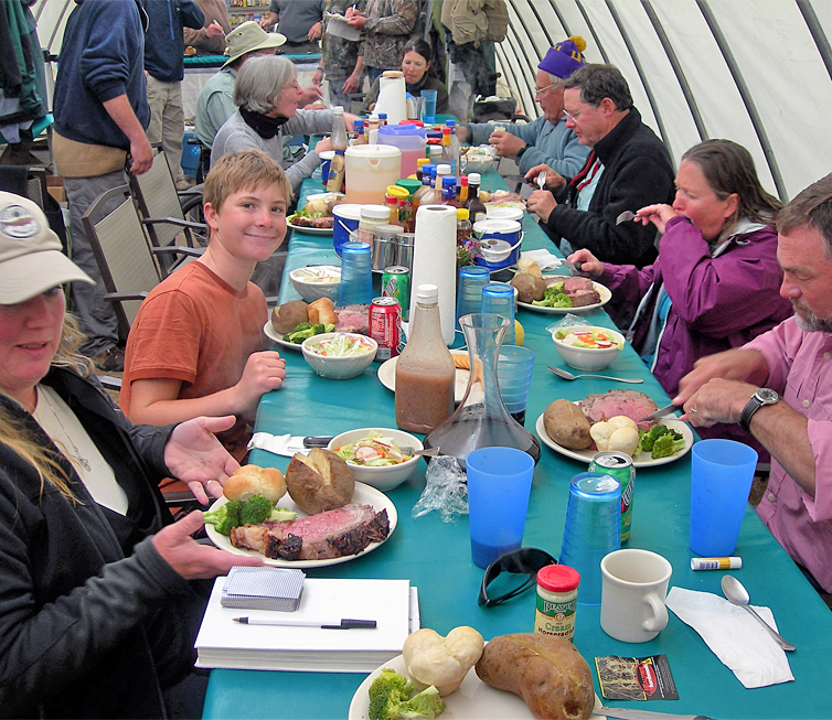 Physically, the two camps are identical. They both feature comfortable Weatherport tents built onto solid wood, raised platforms, both guest quarters and a separate tent in which to take your meals. Well-designed outhouses with flush toilets round out the camps, both of which are located right on the water. Typical of most such camps, breakfasts and dinners are taken in camp, while lunches are typically served streamside.