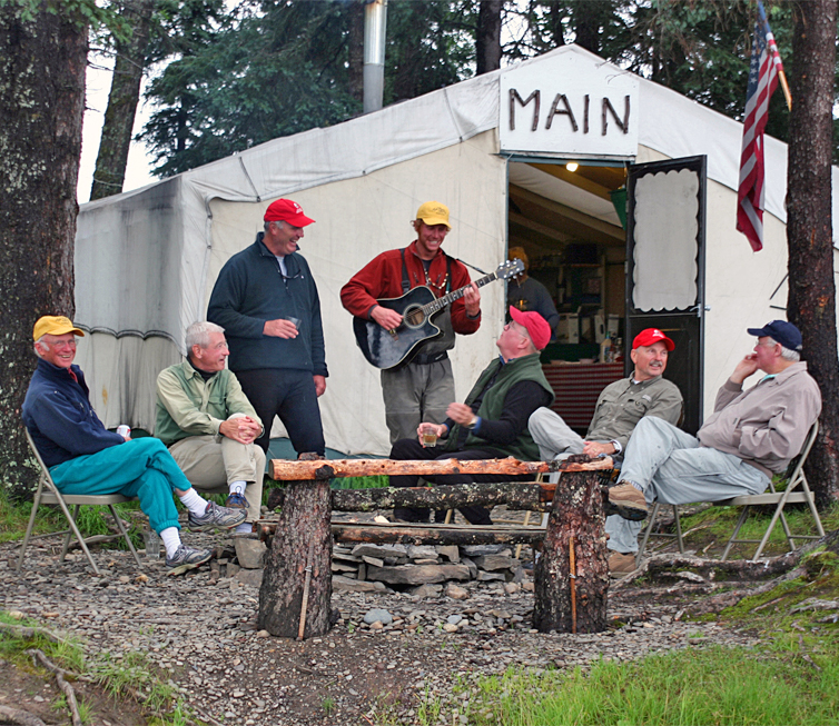 Anglers will return to camp around 5 pm, shed their waders, enjoy a hot shower and head to the dining cabin for hors d’oeuvres and a cold drink. Dinner is normally served at 7 pm, followed by a time of relaxing around the nightly campfire, and sharing of the day's experiences. Images are passed around, stories are embellished, and laughter fills the fading light. It is a good place to be alive, and a fly fisherman.