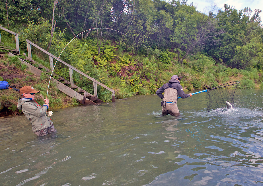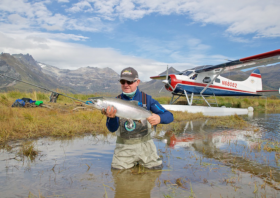 Of course, Alaska has more to offer than rainbow trout. Just as easily accessed from the lodge are the remote coastal salmon streams on the Cook Inlet and in Bristol Bay. Some of these coastal watersheds don’t even have a name, but on the right tide, during certain times in the summer and fall, they stack up with Pacific Salmon so thick you can almost walk across them. All five species of Pacific Salmon can be pursued at Rainbow King Lodge, along with Arctic Grayling, Dolly Varden, Arctic Char, Northern Pike, and lake trout.