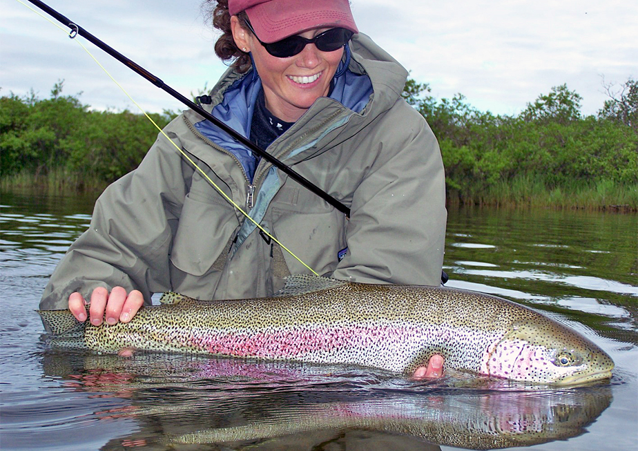 • Royal Wolf specializes in fishing for some of the largest rainbows in Alaska, largely in smaller to modest-sized streams. Most fishing is done with 6-weight rods and floating lines, and it is not unusual to spot the big trout in shallow water before making your presentation. For those that want to target numbers of large trout in easily-waded streams, there is no finer place to go than Royal Wolf Lodge. You will have the opportunity to hook and land large river trout every day!