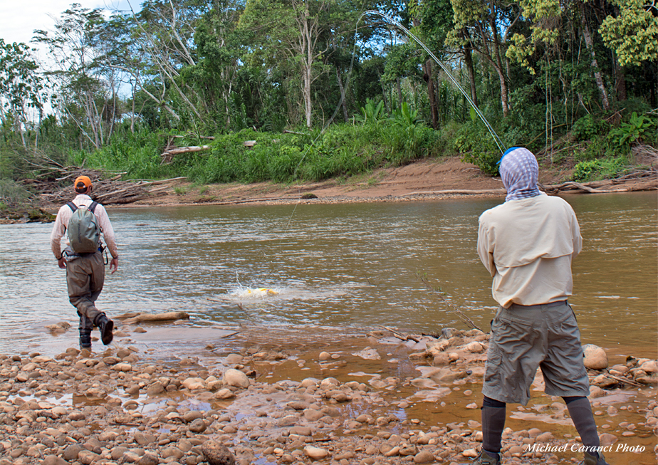 SETTING THE HOOK: Dorado, Yatorana and Pirapitinga have extremely bony and hard mouths. A low rod strip-set is the only method that consistently buries the fly hook into these fish’s mouth, just like a tarpon set. If you are not familiar with the strip-set, it might take some getting used to.