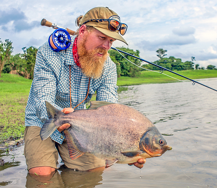 While fishing for a true river monster is appealing for a lot of adventure anglers, Pirarucú has much more to offer than just big fish. In our 2015 exploratory season we did land giant arapaima of up to 150 kilos (330 pounds!), we also discovered several other remarkable, unique, and exhilarating fisheries here in the Mamirauá Reserve. In addition to the large fish, we found vibrant populations of “juvenile” arapaima from 20-60 pounds, which readily take large streamers on floating fly lines in the shallow lagoons of the reserve. There are also many arowana, a fish popular in aquariums in the US but that average 2-8 pounds in the wild and attack poppers and terrestrials with reckless abandon, instantly leaping acrobatically high into the air once hooked. And one can’t pass by the schools, singles, and pairs of cruising tambaqui often sighted along the banks, fish that resemble freshwater permit in size, shape, and their hard-pulling nature on the end of a fly line. Throw in potential for yellow peacock bass, piripitinga, red-bellied piranhas, and oscars, and you have the recipe for an incredibly diverse fishery that will not disappoint any jungle angler.