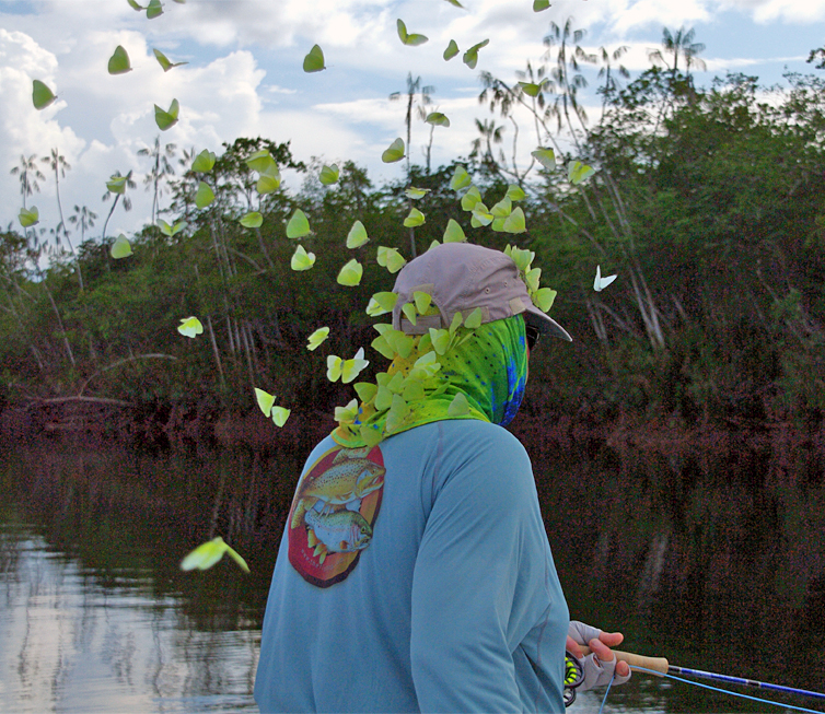 The weather can be hot. Mid-day temperatures in the Amazon range from 85° - 95°F, or higher, with 80 - 90% humidity. Due to the intense sun (you are literally on the equator) and sweat-inspiring humidity during the day, you'll want to be mindful of dehydration and overexposure to the sun. At night the temperature drops to a comfortable 65° - 75°F. Although you will be fishing in the dry season, there are occasional rain showers (you are deep inside a rain forest), so you want to have light rain jackets and rain pants with you at all times. The jungle is surprisingly friendly due the high tannin concentration of its waters, and there are no mosquitoes here. There are, however, some no-see-ums and gnats, along with horseflies and bees. In low water conditions these pesky insects are usually pre-occupied and leave anglers alone entirely; but when the waters come up they search for salt, and find it on sweaty fishermen! We strongly recommend wearing long sleeve shirts and pants during your fishing week. Buff face masks are almost mandatory for sun and bugs. Covering up from head to toe in light-colored, lightweight clothing will protect you from the sun and the bees. We also strongly recommend bringing a head net. Most of the time you won't need it, but it is good to have in your boat bag if the bugs do come out to play. They are not biting insects so bug bites are very uncommon, but they can be annoying while flying about searching for salt.