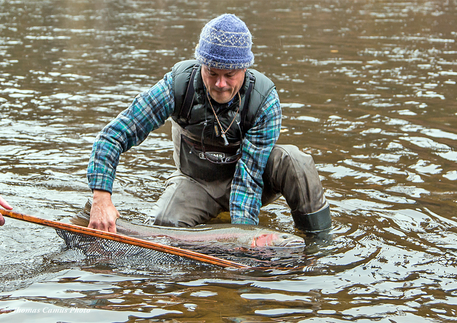 continue right through September into the first part of October. As it cools down, fish might still look up from time to time, but most of the work will be with sink tips in the back part of October. Mid September through mid October is a very popular time because the river is generally loaded with fish and while the waters are cooling, the fish are still very active. From Mid October into November the waters definitely get cooler, as Autumn gives way to early winter conditions. The trees on the mountainsides are in beautiful coloration or may even get a dusting of snow. This is an exciting time to be there, the entire run is holding in front of you, and it is the time for truly big steelhead.