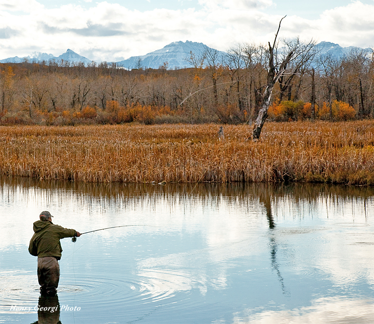 • This lodge is located on the eastern edge of the Canadian Rocky Mountains, just north of the US border. The fishing is familiar to those who fish in Montana, but with only a tiny fraction of the angling pressure to be found south of the border. Many days guests will fish rivers seeing few if any other anglers. That translates into unpressured fisheries, happy fish, trout that eat flies readily.