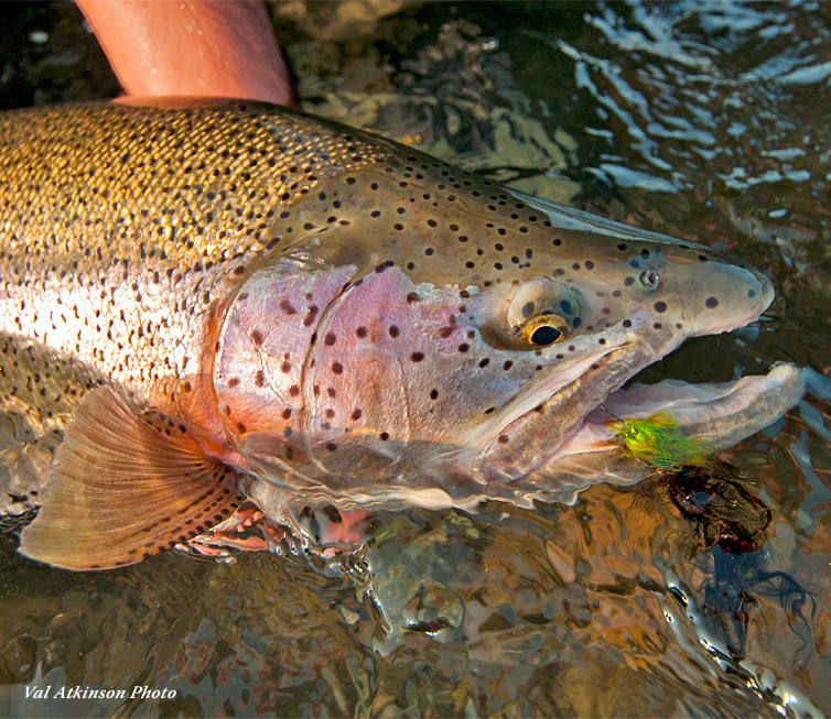 into 3 to 6 trout per day that average 4 to 8 pounds, and are occasionally double that size. Advanced anglers skilled in reading water, wading, and casting, and who have a modest level of self-sufficiency usually encounter considerably more action. Many anglers will land the largest trout of their lives during a week on the Zhupanova.