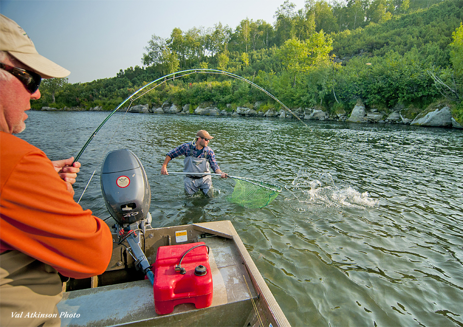 August is the middle of the season. Chum and sockeye salmon enter the river and the cycle of life is laid out in full magnificence. rainbows are targeted with mouse and streamer flies throughout the month. The first two weeks of August, too, are the peak time to intercept the Super Kundzha. By the middle of the month the mosquitos, black flies and no-see-ums are completely gone and the weather transitions toward fall.