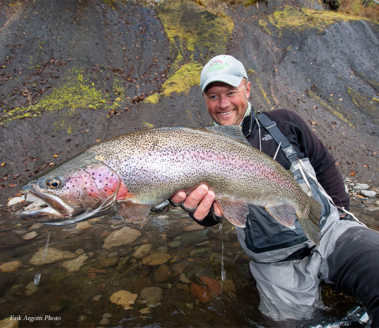 size. Advanced anglers skilled in reading water, wading, and casting, and who have a modest level of self-sufficiency with tying knots and fly selection, will encounter considerably more action. Almost all anglers land the largest trout of their lives during a week on the Zhupanova, and many find it to be the finest trout river in the world.