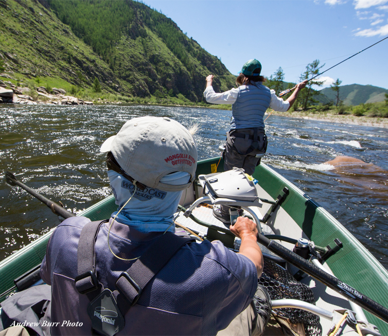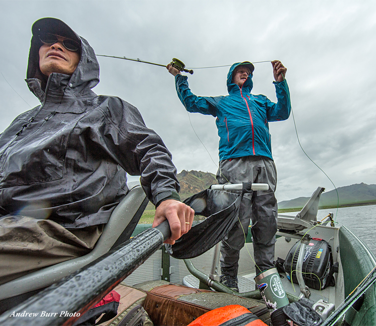 The "classic" set-up is a single-handed 8 or 9w rod for Taimen and a second 4, 5, or 6w rod for trout. (Taimen can be over fifty inches and forty pounds. Many trout will be around twenty inches and right around three pounds.) Many guests also bring spare rods. A 7w is a nice addition for throwing smaller dry flies. Make sure your reel has a functional drag and is fully loaded with backing. Large arbor reels are useful.