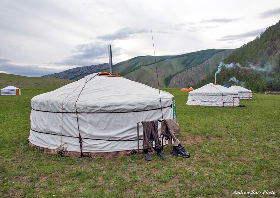 We have eight comfortable Mongolian ger (yurt) camps along the Taimen Sanctuary's prime waters. The camps are one day's float apart, each one situated along a uniquely beautiful stretch of river with great fishing right out the front door. All camps have the amenities one would expect to find on a comfortable African tented safari.