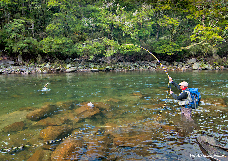 with rainbows and browns averaging 3-5 pounds. It truly is the stuff of dreams! While more sedate in approach, the Maori streams are just as remarkable of fisheries – many are tiny creeks that would hold pan-sized fish back home, but are full of dry-fly inhaling monsters just as large as found with the helicopters, and in an incredible landscape. Imagine watching a 5-pound brown trout rising deliberately to your Royal Wulff in a crystalline pool the size of your SUV!