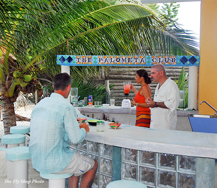 Between 6 and 7 pm, join the other anglers and guests at the lodge at the outside bar for a refreshing and cool cocktail and delicious hors d 'oeuvres. At 7 pm, a dinner of Mexican and/or Mayan cuisine is prepared for you served with the house wine. Your hosts Dick and Kaye Cameron assure everyone that your evening meal is not just dinner but a Feast! After dinner guests can retire to the palapa bar for an evening drink and more fish tales, tie a few flies at the tying stations or catch up on internet news and emails.