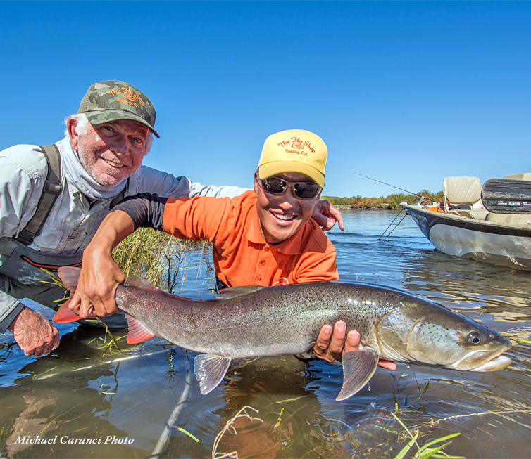In Mongolia, taimen can live for nearly fifty years and reach over sixty inches (1.5 meter) in length. Although we often catch several giant taimen every season, most Mongolian taimen caught on the fly are generally between 30 – 40 inches (.75 – 1 meter).