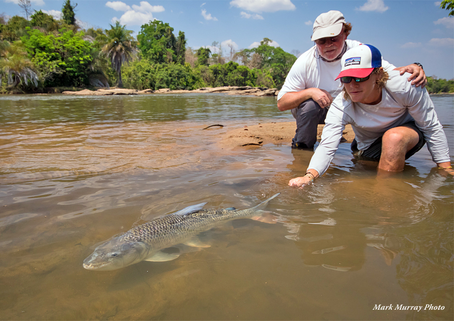 These rivers have received very little fishing pressure over the centuries, and with the controlled fly fishing venture will continue to do so. The system is also extremely rich in bait fish (predominantly red finned barbs). The combination of these factors has resulted in this population of tiger fish obtaining otherwise unheard of sizes. Trophy fish in this system are measured above 10 lbs. Be prepared to have your tiger fishing paradigms shifted!